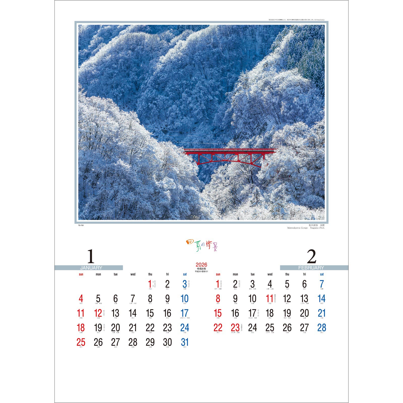このカレンダーは、心癒される落ち着いた雰囲気の情景を堪能できる商品です。