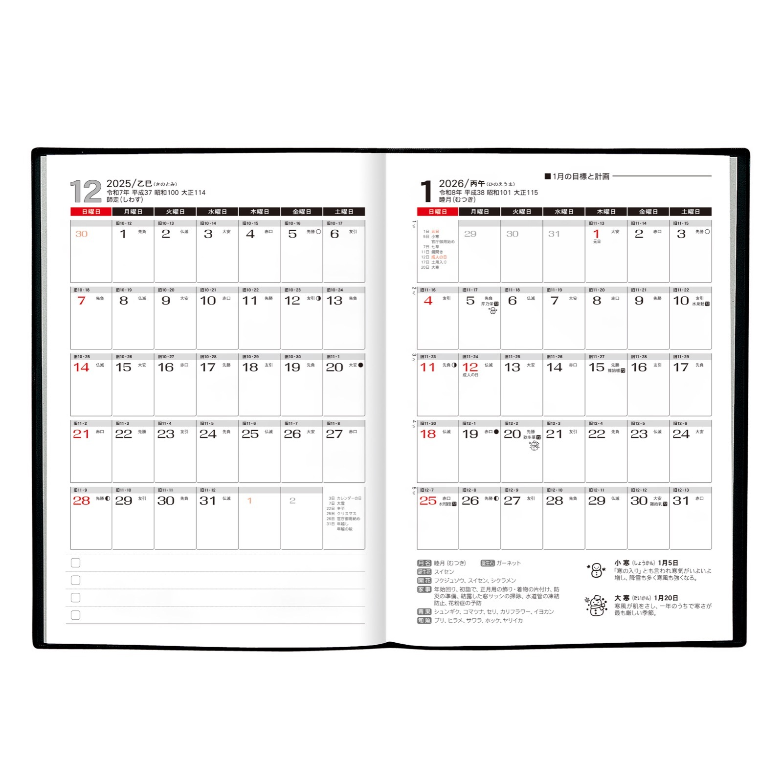 ベーシックな黒の装丁なので、ビジネスはもちろんプライベートにも使える、カレンダー専門メーカーが作った暦情報満載の手帳です。