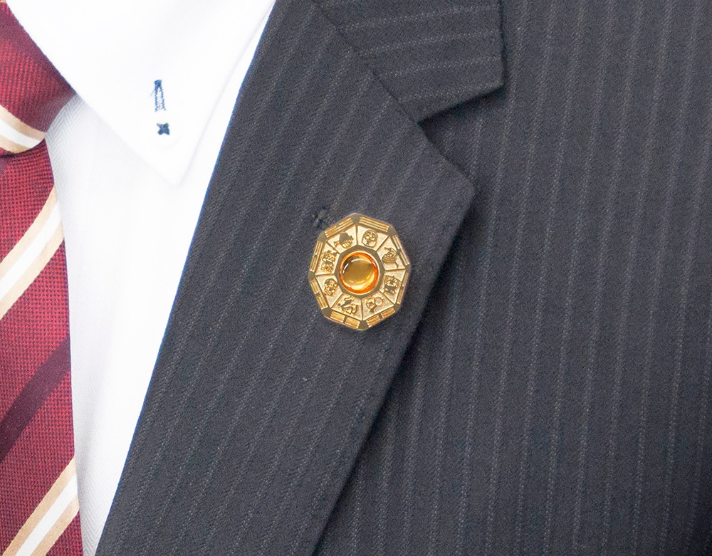 金運八卦鏡デザインのピンバッジ。